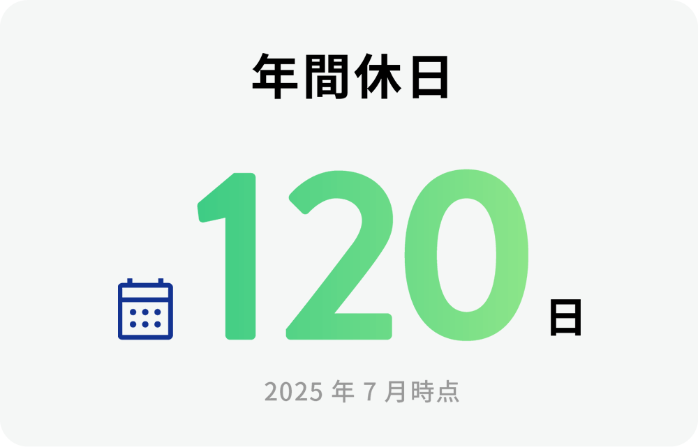 各種社会保険完備はもちろん、充実した福利厚生制度を整え、安心して長く活躍できる環境です。